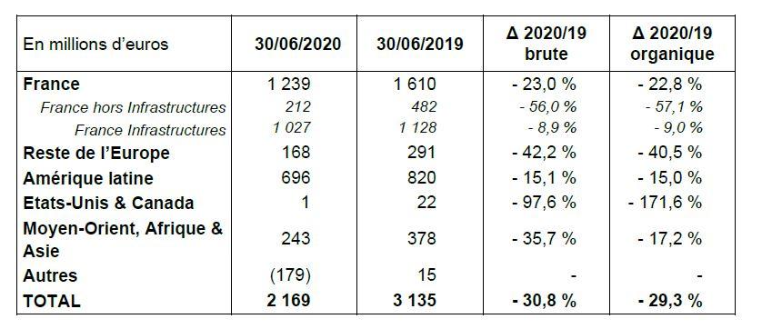 Le ROC des Infrastructures s'est élevé à 1 266 millions d'euros, soit une baisse organique de 11 %.